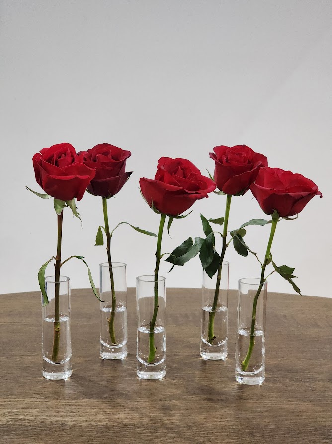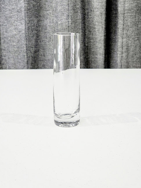 A sleek and versatile glass cylinder vase measuring 14cm high and 4cm top diameter. Perfect for showcasing single stems, delicate arrangements, or adding a minimalist and luxurious touch to your event décor. Ideal for weddings or intimate gatherings.